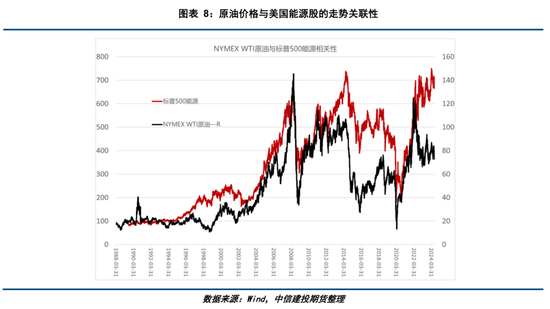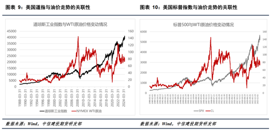 从整个美国股市的角度看,原油价格与其关联度较小。美国道琼斯指数和标普500指数过去30余年走出了长牛格局,这期间原油价格的波折则较大。原油仍是由自身供需来驱动。
