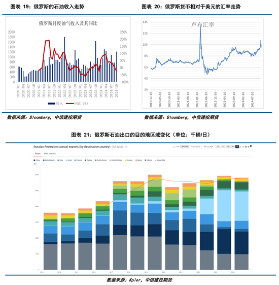 俄罗斯原油出口结构在2024年变化较小,2025年可能延续这种格局。俄乌冲突发生后,印度和中国逐步取代欧美两个地区的市场份额,印度当前是俄罗斯原油的最大进口国。