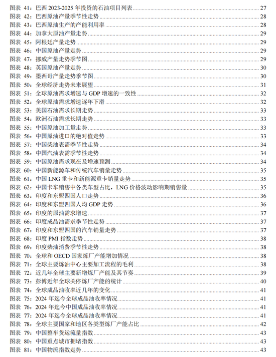OPEC+和美国之外,我们看到全球原油供应在2024年增量有限,2025年他们会是怎样变化?这一点会越发关键,因为我们看到OPEC+和美国都已经进入了稳产期。2025年产量增长的国家会有巴西、圭亚那和加拿大,产量持稳的国家会有挪威、中国,而产量继续下滑的是英国和墨西哥。