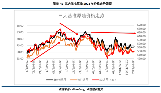 第一段上半年的上涨行情:2024年1-4 月间地缘政治局势紧张,投资者对地缘风险高度关注并持观望态度,市场情绪不稳定,使得油价容易出现突发性大幅波动,一定程度上主导了原油期货市场的短期走势。