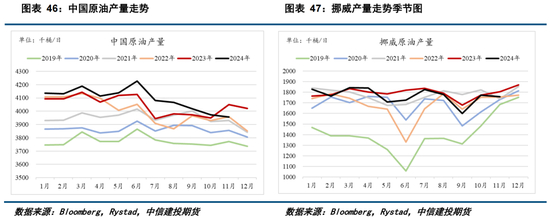 中国原油产量2025年可能小幅增加,受到中海油一些项目将在2025年达到产量高峰的提振,IEA预估中国产量将增加10万桶/日。