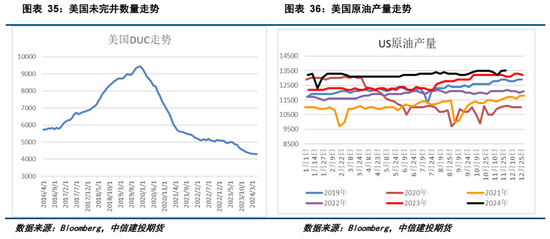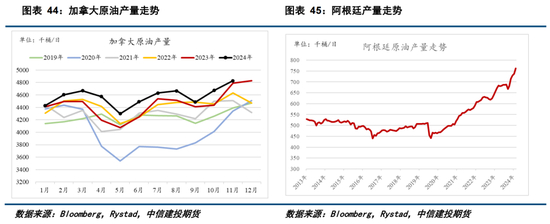 英国和墨西哥仍处于稳定的产量下滑阶段中,尤其是墨西哥,2024年产量同比下降10万桶/日,这种趋势在2025年仍将延续。