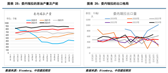 2025年美国对委内瑞拉加强制裁的可能性很小,因为当前就处于制裁之中,只是有几家欧美公司有一些原油的开采权和销售权。2025年如果美国重新加强对委内瑞拉的制裁,该国的产量降幅也较为有限。