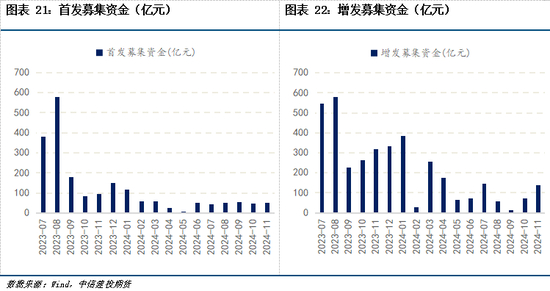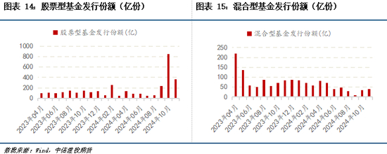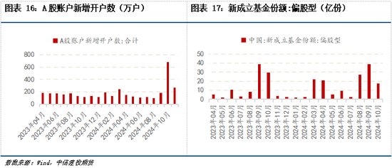 2024年初,市场呈现出股票类基金发行偏缓的态势,彼时投资者更倾向于收益稳定、风险较低的货币和债券类基金。9月份以来,上述趋势开始逆转,股票型基金发行明显提速,9月、10月和11月单月增长分别达到236.0亿份、849.0亿份和368.5亿份,前11个月累计同比增长76.6%。与此同时,个人投资者参与权益市场的意愿自9月末起显著上升,10月份A股账户新增开户数达到684.7万户,创下近几年新高;11月份,新增开户数为269.8万户,成为年内次高点,显示出个人投资者对A股市场的关注度和参与热情在不断攀升。
