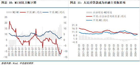 宏观流动性方面,2024年1-11月,社会融资规模增量累计为29.4万亿元,比上年同期少增4.24万亿元。其中,前11个月新增人民币贷款17.1万亿元,同比少增4.5万亿元,成为社融主要拖累项。从结构上看,企业端与居民端贷款均同比少增并全面低于往年同期水平,同样表明实体经济有效需求不足,融资意愿偏弱。
