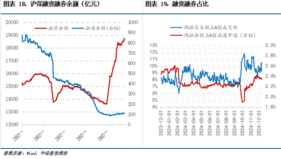 杠杆资金方面,去年9月融资保证金正式调降后,融资余额曾连续攀升;但从23年12月下旬开始,杠杆资金规模升至高位后进入震荡回落阶段,在今年1月下旬市场大幅波动中规模迅速收缩,随后又有所修复。9月底以来,杠杆资金情绪快速回暖,融资余额形成一轮明显拉升,增量资金的入市进一步强化了与指数之间的正反馈机制。与之相对的是,在融资融券新规后,融券资金较为谨慎,融券余额不断下降,当前已从年初的700亿元降至100亿元附近,反映出市场多空力量的结构性调整。