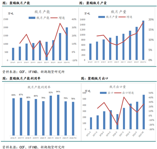 总体来看,聚酯环节在2024年延续了上一年的产量高增长态势。
