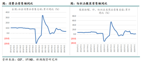 2024年,国内消费整体表现疲软,1-11月全国社会消费品零售额累计同比增速3.5%。其中服装纺织品零售需求全年表现更弱,1-11月服装纺织品零售额累计同比增速0.4%,低于整体消费品。节奏上看,上半年3-5月以及下半年10月表现较好,其余月份终端消费表现颓势。居民收入预期不佳,消费受到较大影响。