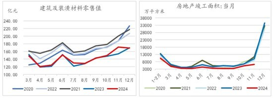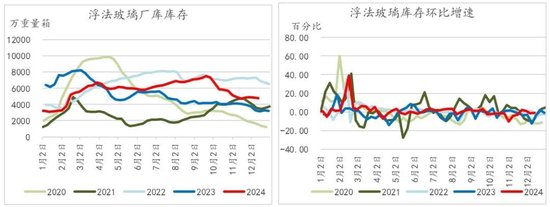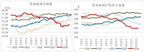 家装玻璃需求方面,随着三季度末、四季度起房地产销售情况的改善,一定程度上带动了家装玻璃的需求。从建筑及装潢材料零售值来看,四季度数据明显好于2023年同期,一定程度上能够得到验证(新房+二手房装修需求)。由此可知,虽然建筑玻璃(工程订单)需求相对疲软,但家装玻璃订单方面在一定程度上托底了玻璃需求。因此可以看到,在当前的季节性淡季下,虽未见明显起色,但需求也不存急速下滑的情形。