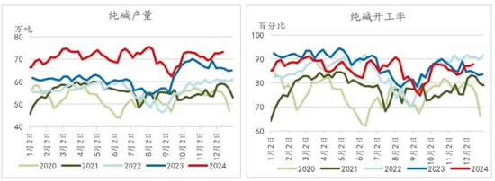 2024年全年纯碱产量预计在3696-3706万吨左右,同比增长14.63%-14.94%。