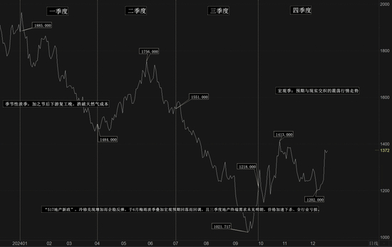 三季度末(“924”新政)、四季度进入宏观季,行情走势围绕宏观预期与现实的交织博弈而展开,外加盘面价格低估值驱动,玻璃 “破底翻”,随后进入震荡整理行情。