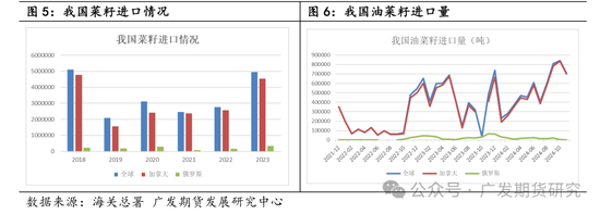 中国商务部9月9日发布公告,表示自公告发布之日起,对原产于加拿大的进口油菜籽进行反倾销立案调查。根据加拿大油菜籽协会数据,2023年加拿大有近64.8%的菜籽出口至中国市场,超过其余地区之和。加拿大菜籽出口对中国依赖程度较高,今年欧盟减产或对加籽需求增加,但无法完全弥补中国需求缺失带来的影响。2019年中美贸易关系紧张同样影响到中加关系,彼时中国对加拿大油菜籽检验检疫要求趋严,导致前几年中国自加拿大进口菜籽数量明显下滑。但本次反倾销调查更为严厉。2019年中国采取检疫措施后,迅速抑制了加菜籽供应。据海关总署数据,2019年加菜籽进口约235.7万吨,同比下降46.7%。但目前国内进口尚未有减少,四季度供应仍宽松,叠加水产淡季,菜粕压力较大。