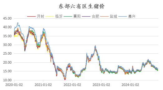 图:生猪期货东部六省交割区域现货价格走势图