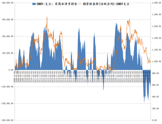 图表:非商业净多持仓与美豆
