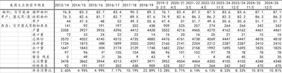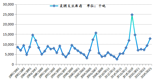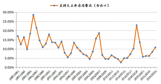图表:美国大豆库存消费比、美国大豆期末库存