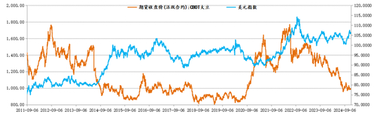 图表:CBOT大豆与美元指数