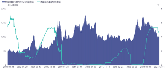 图表:美国联邦基金利率与美豆价格