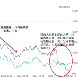 当前2024年年底,巴西大豆贴水提前大跌,美豆与连粕走势背离,到底是机会还是陷阱?我们认为都有可能。在农产品处于增产周期,需求可能出现结构性变化、宏观扰动项暂时减少的背景下,农产板块12月份整体下行,情绪的宣泄不会很快结束。当然宣泄过度的情绪遇上一点意外也会出现报复性反弹。这就是机会和风险并存。