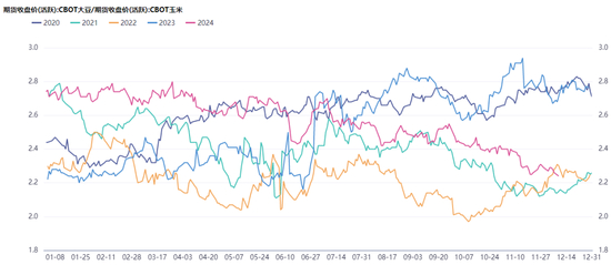 图表:美国大豆玉米比价