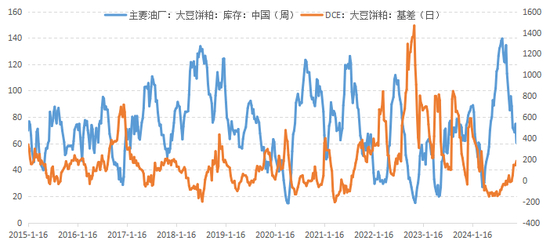 图表:油厂豆粕库存与基差