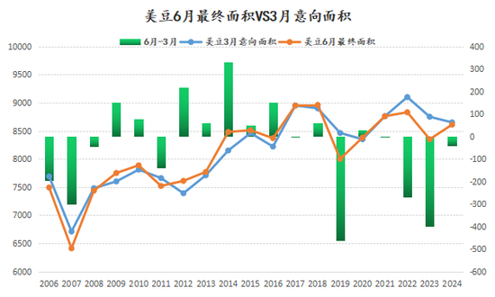 图表:3月种植意向报告与6月种植面积报告的对比