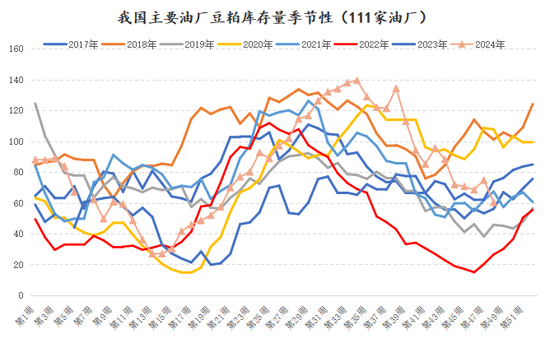 油厂豆粕库存也存在一定季节性规律,年内库存高点一般出现在7月份,主要因为春节后油厂开工率逐渐回升,而6、7月份的大豆进口也会达到年内高峰,春节后的需求则是缓慢恢复,造成油厂豆粕库存积压,库存低点一般出现在春节后(春节长假的消耗及油厂开机率下降)和年底(传统消费旺季)。库存的高点一般对应着现货基差的阶段性低点, 库存的低点一般对应着现货基差的阶段性高点。