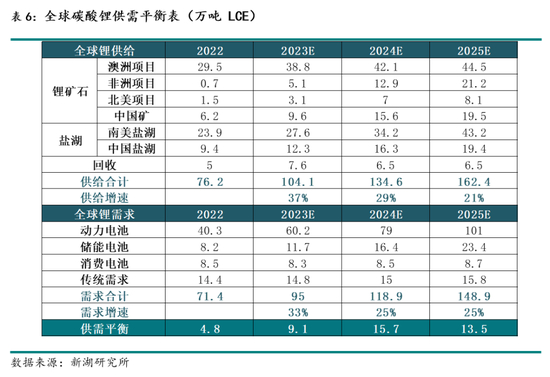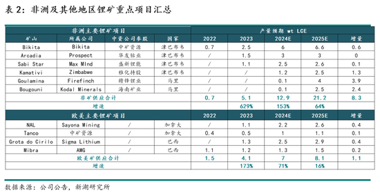 供应: 预计25年全球锂资源供给仍处于扩张周期,供给增量主要来自于南美盐湖及非洲锂矿,供给减量情况根据锂价下跌幅度及时间长度存有较大弹性。