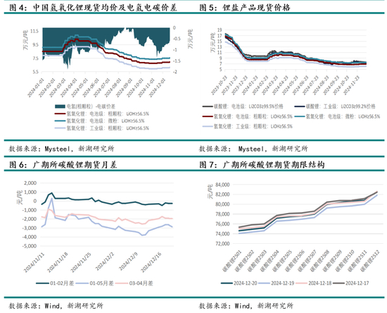 24年锂价中枢继续下移,整体波动纵向对比有所放缓,横向对比仍处于较高水平,截至24年12月20日收盘,碳酸锂主连报收于77880元/吨,主连年内下挫27.69%。24年锂价交易主逻辑仍为基本面供需确定性过剩逻辑,期间因短时供需错配及消息面扰动出现阶段性反弹行情。