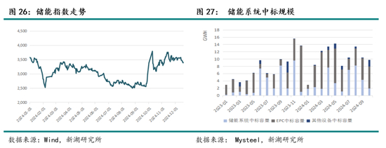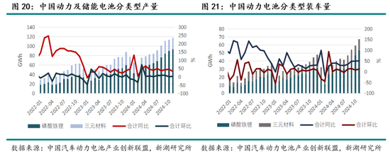 需求上, 主要增量仍来自于新能源汽车及储能领域。 从新能源汽车来看, 预计25年消费品以旧换新政策将继续延续或加码,国内增量仍有空间,但预计增速不及24年;海外增速受补贴退坡及政策风险扰动影响或将受限。 从储能来看, 预计25年仍维持较高增速,特朗普上台后美国政策风险仍存扰动,可重点关注中东、拉美等新兴市场增量表现。