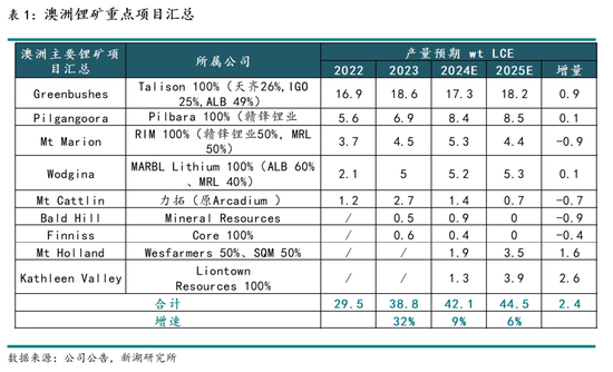 澳矿24全年产量预期为42.1万吨 LCE,同比增长9%;25年产量预期为44.5万吨 LCE,同比增长5%,合计增量2.4万吨LCE,预计主要增量项目来自于Kathleen和Holland爬产,主要减量项目为Bald Hill,Cattlin等。