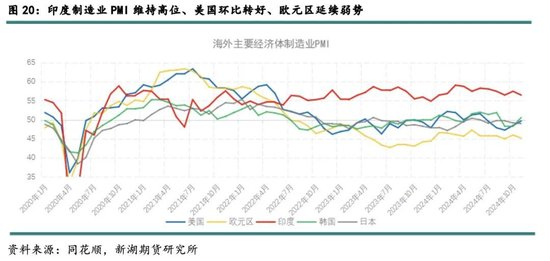 印度方面,人口红利仍然是刺激其钢铁产能释放的主要驱动。2024年1-10月印度生铁累计产量为7331万吨,同比增加168万吨,增幅2.3%,年内增量受到大选及夏季极端天气等因素影响低于预期。后续来看,印度制造业PMI仍然常年保持在56以上,城镇化相关基础设施建设有望继续带来钢铁需求增长;产能角度来看,2024年仅京德勒西南钢铁公司(JSW)、塔塔钢铁公司(Tata Steel)和印度钢铁管理局(SAIL)三家钢铁企业就合计投产了超1200万吨高炉炼钢产能,2025年随着新项目产能的进一步释放,其铁矿石需求增幅有望显著扩张。