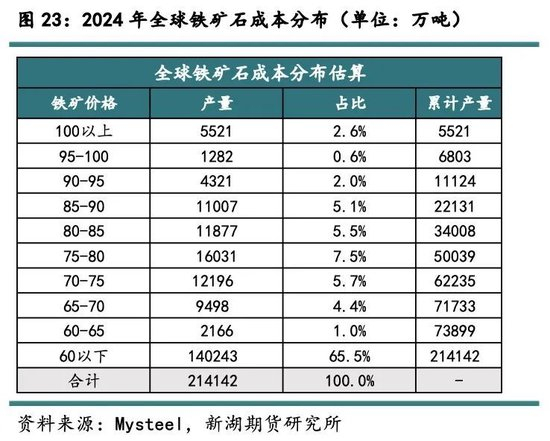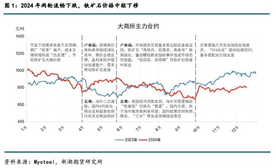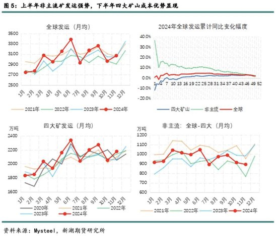 2024年作为铁矿石供需格局转换“元年”,价格中枢随着供应放量下移,年内最低触及非主流矿成本线。