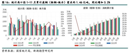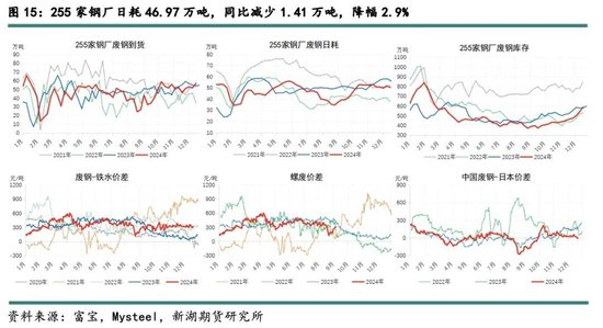明年来看,尽管国内“两新项目”有望带来社会废钢的增量,但废旧设备的质量参差,入炉使用比例存疑,叠加自产废钢或将继续受到企业生产积极性不足影响小幅下降,预计明年供应同比难有增量,废钢价格相较生铁仍然不具有优势。
