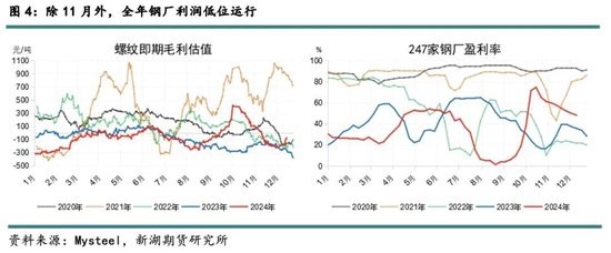 钢厂库存方面,今年除10月以外,大部分时间钢厂利润在低位徘徊,“弱预期”主导企业生产经营行为,钢厂延续按需采购策略、压低原料库存以节约资金占用。