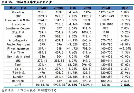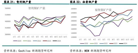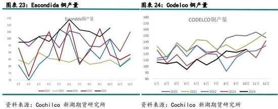 但智利的一些铜矿生产仍面临水资源缺乏和矿山品位下降的问题。Codelco 2024年产量仍延续降势。Anglo American智利部分的产量2024年仍有5-6万吨的减量。整体来看,2024年智利除去Escondida和恢复和新增矿山QB2产量的释放,老旧矿山仍带来了约9万吨的减量。2025年智利的老旧矿山产量或仍将贡献一定减量。