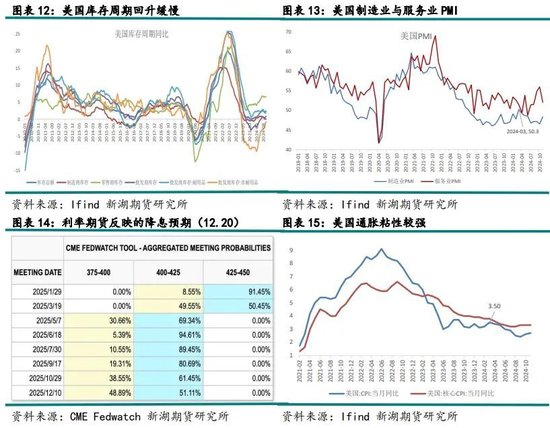 四季度以来美国CPI数据有所回升,美国通胀粘性较强。另外特朗普2.0的移民以及关税政策将给美国带来通胀压力。12月联储如期降息25BP,但鲍威尔释放偏鹰信号,利率期货显示市场对2025年联储降息预期大幅修正至1次,而美联储点阵图显示2025年将降息2次。另外特朗普有一定的货币宽松主义倾向,其竞选前后多次表达干预美联储的想法,2025年鲍威尔与特朗普之间博弈或加剧。美联储降息最快的阶段或已过去,2025年需警惕市场对美联储降息预期的反复,对铜价所造成的影响。