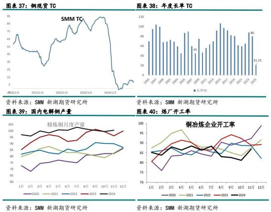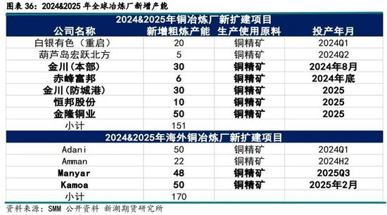 整体来看,不管是矿端原料还是冷料,25年炼厂都面临较大的压力。其产量释放将具备较大不确定性,全球铜矿增速下降将在25年传导至冶炼端。
