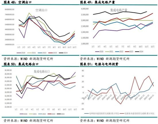在消费品以旧换新政策以及出口高增长影响下,2024年汽车和家电消费超预期。2025年虽然受关税影响,出口提振力度或减弱,但在国内扩大内需政策基调下,“以旧换新”等商品消费补贴将加力扩围,25年汽车、家电有望维持正增长。不过汽车中增长主力仍将由新能源汽车贡献,传统汽车或对铜消费仍是拖累。对于消费电子领域,在全球人工智能迅猛发展的推动下,以及国内对芯片行业的政策支持下,24年集成电路产量实现了20%一以上的高增长,25年该领域则有望延续高景气。