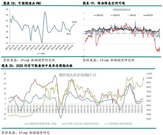 宏观分析:美国经济“软着陆”已成共识。在预防式降息和特朗普2.0政策推动下,下半年美国经济有望开启新一轮复苏。国内稳增长的决心较强,25年有望出台较大力度的财政和货币政策。下半年,特朗普关税明朗后,不确定性下降,叠加国内政策的释放。可能再度推动中美主动补库存周期的共振,届时铜价上空间将打开。
