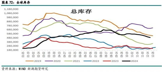 2025年在低TC和冷料短缺的背景下,炼厂产量释放存较大不确定性。而消费端,受益于欧美电网改造,全球新能源正增长带来的可观增量,叠加国内经济修复,地产投资改善带来的拖累量收窄,全球消费增速有望环比回升。因此25年全年,全球库存有望较24年下降。