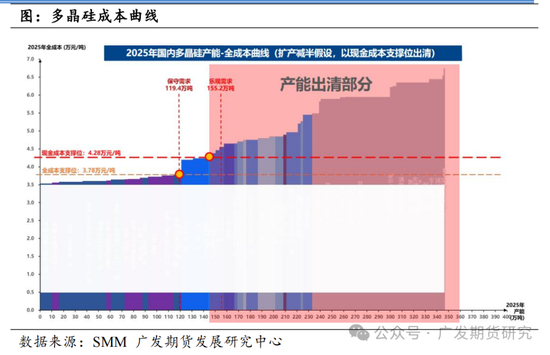 目前,多晶硅市场价格承压,产能大于需求,市场需要出清部分产能,从市场化的角度来说,高成本产能将是更容易被市场化出清的。成本曲线与需求曲线的交点决定了市场的均衡价格和数量,成本曲线右侧的高成本产能将逐步被淘汰。这些企业由于生产成本高于市场价格,无法维持正常运营,最终会选择减产或退出市场,从而优化市场供给结构。