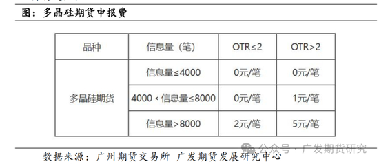 多晶硅期货按日、按合约收取申报费,收费标准如下: