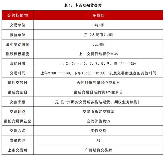 • 2024年12月24日,多晶硅期货上市交易。首批上市合约为PS2506、PS2507、PS2508、PS2509、PS2510、PS2511和PS2512,各合约挂牌基准价均为38600元/吨,交易单位为3吨/手。