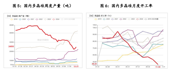 1.供应:12月24日,多晶硅龙头几家企业发布有序减产公告,但就当前多晶硅开工率而言,减产或基本到位,后续需关注企业具体复产安排。由于多晶硅生产企业集中度较高,企业生产调整(包括复产、检修、生产安全)或加大多晶硅价格波动。