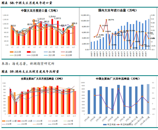 25年中美博弈再趋激烈,将是国内大豆供给重要潜在利多变量。特朗普25年1月上任,若很快对华多项商品大幅征税,中国对美国大豆的进口大概率还是会成为反制工具。25年4月开始新作丰产的巴西大豆将陆续到港,故25年上半年国内进口大豆政策风险较小,中美关系或将影响25年下半年的大豆进口。