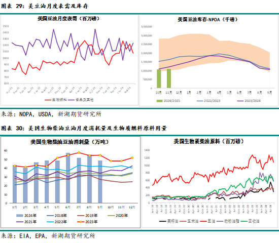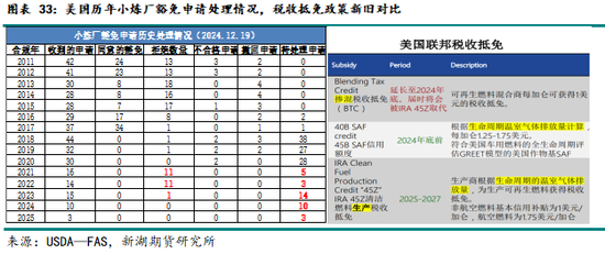 25年特朗普政府对生物能源燃料的政策,对中长期美国豆油在内的生柴原料需求影响预计显著。特朗普及拜登政府对待可再生能源的政策态度截然不同。拜登政府的能源政策呈现出绿色转型与能源安全并重、技术创新与劳动力转型并行的特点。拜登在任期间推出了包括《通胀削减法案》在内的多项关键举措,强调清洁能源领域的大规模投资和税收激励,通过补贴推动风能、太阳能等可再生能源的快速发展。拜登就任总统这几年,美国二代生柴产能持续扩张,导致美豆油在内的生柴原料用量不断增加。但由于各生柴原料价格波动,比较收益影响下,美豆油生柴用量的月度波动幅度也明显增大。