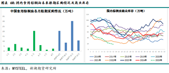 由于内外价格倒挂严重,目前25年1-4月船期国内预估采购量远低于每月20-25万吨刚需。目前时点看,25年3-4月国内棕榈油库存或创历史同期新低。待产地产量季节性趋增,或许中国进口窗口才能打开。