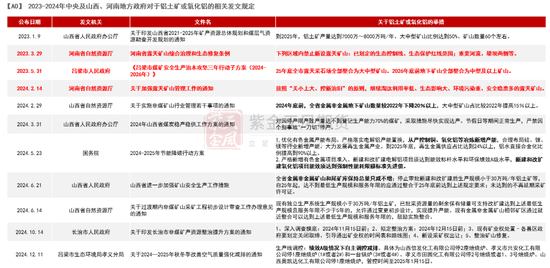 政策预期不变的情景下,未来晋豫两地的矿石供给仍难以实现有效增量。今年,国家和各地政府相继印发相关方案或措施,加大对矿产开发的管理工作。因此在接下来可预期的时间段内,铝土矿的开发将承受更多来自环保和安监等政策的压力。