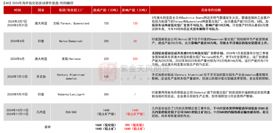 1、2024年4月,印度韋丹塔(Vedanta)投产150万吨,建成产能由200万吨变为350万吨,但实际投产进度远不及市场预期,直至12月7日才宣布投产运行。