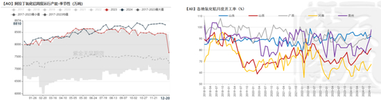 我们预计2025全年中国氧化铝产量有望达到9025万吨,较前一年增加676万吨,同比增速8.10%。